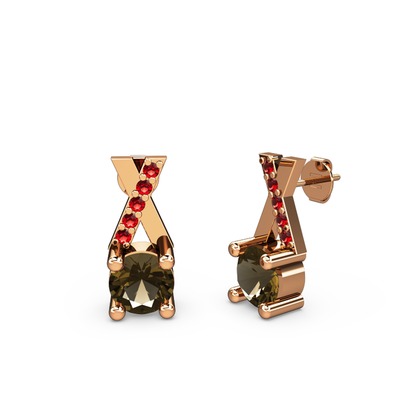 Dumanlı kuvars ve garnet 18 ayar rose altın küpe