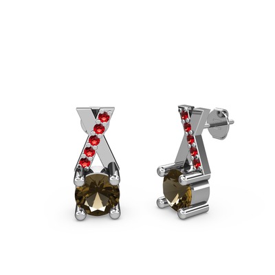 Dumanlı kuvars ve garnet 8 ayar beyaz altın küpe