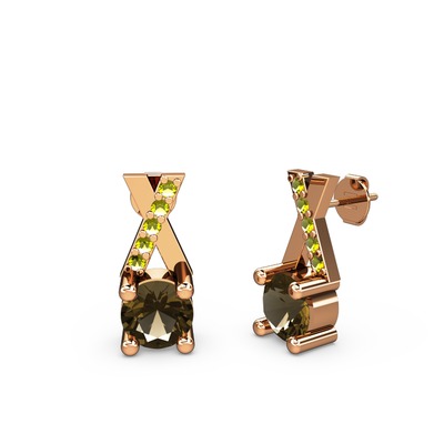 Dumanlı kuvars ve peridot 8 ayar rose altın küpe