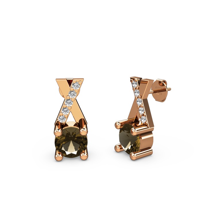 Dumanlı kuvars ve swarovski 8 ayar rose altın küpe