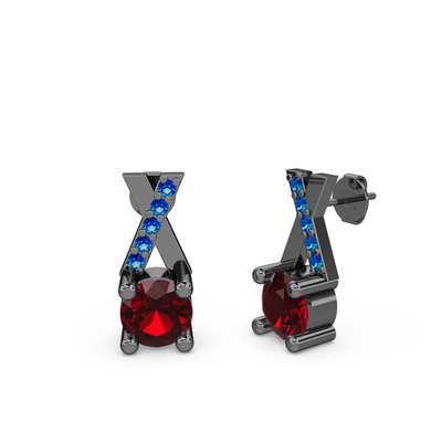 Garnet ve lab safir 925 ayar siyah rodyum kaplama gümüş küpe