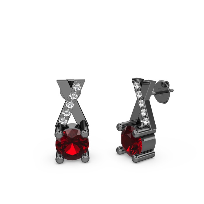 Garnet ve pırlanta 925 ayar siyah rodyum kaplama gümüş küpe (0.088 karat)