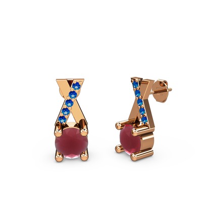 Kök yakut ve lab safir 8 ayar rose altın küpe