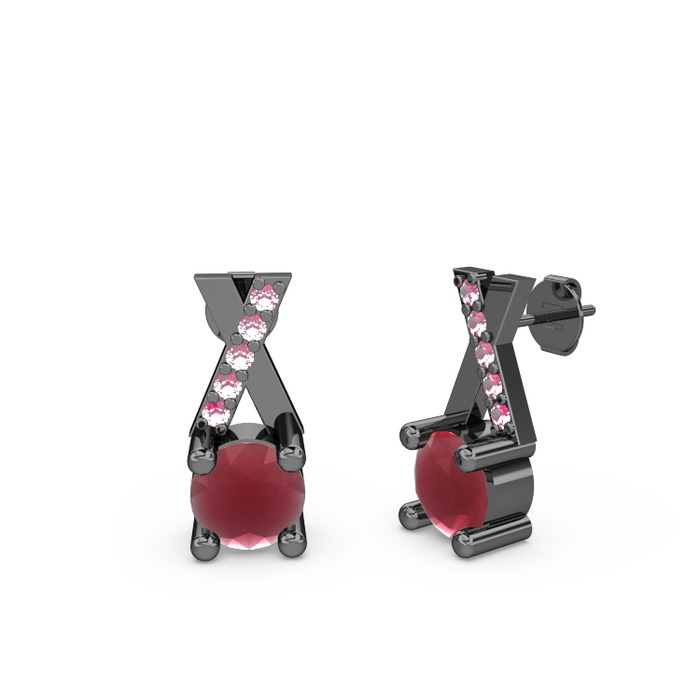 Kök yakut ve pembe kuvars 925 ayar siyah rodyum kaplama gümüş küpe
