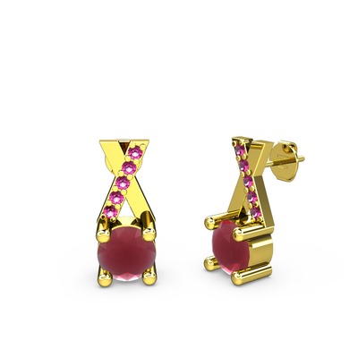 Kök yakut ve rodolit garnet 18 ayar altın küpe