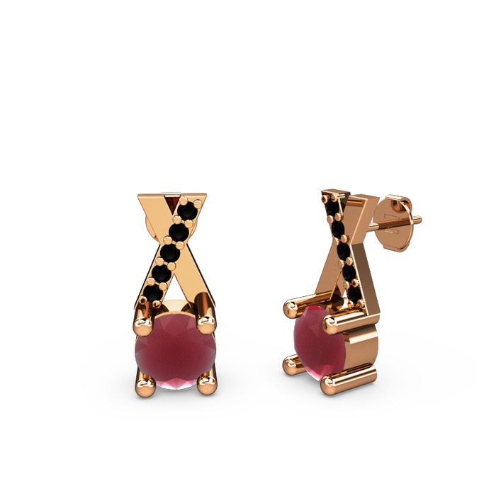 Kök yakut ve siyah zirkon 18 ayar rose altın küpe