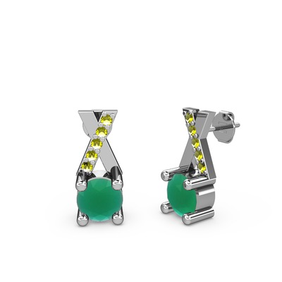 Kök zümrüt ve peridot 8 ayar beyaz altın küpe