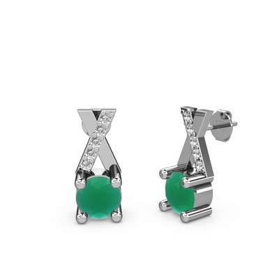 Kök zümrüt ve pırlanta 14 ayar beyaz altın küpe (0.088 karat)