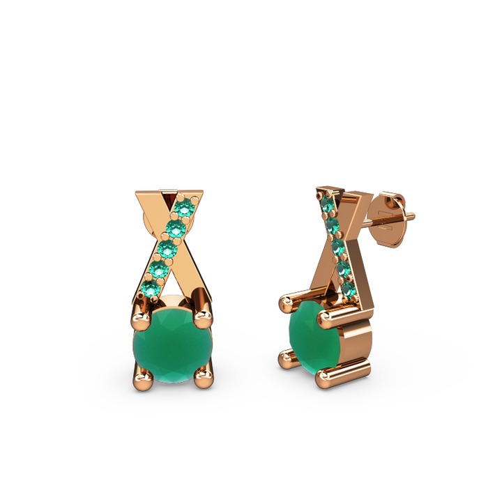 Kök zümrüt ve yeşil kuvars 14 ayar rose altın küpe