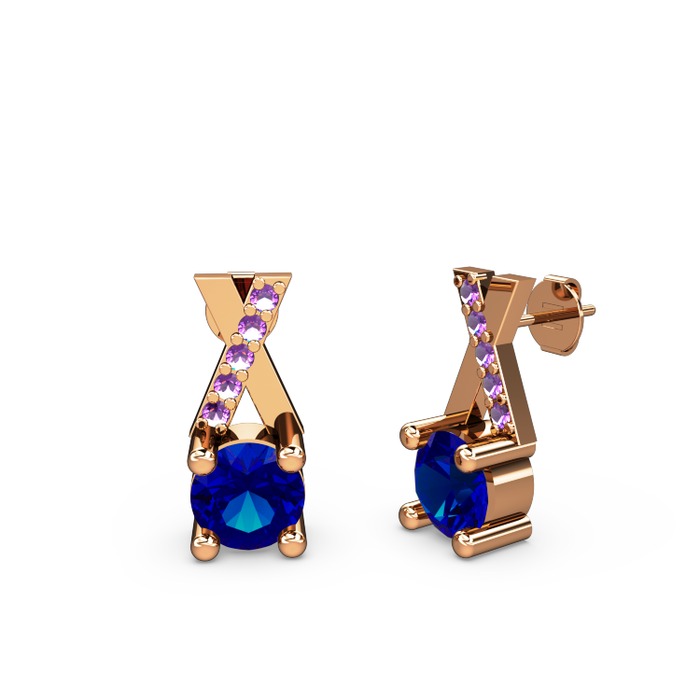 Lab safir ve ametist 14 ayar rose altın küpe