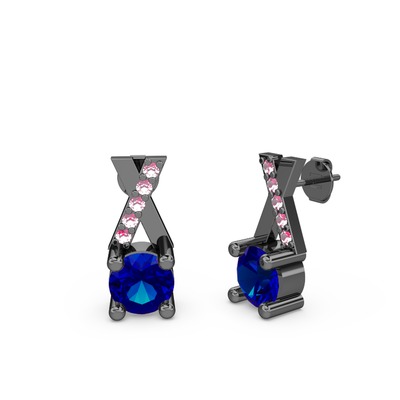 Lab safir ve pembe kuvars 925 ayar siyah rodyum kaplama gümüş küpe
