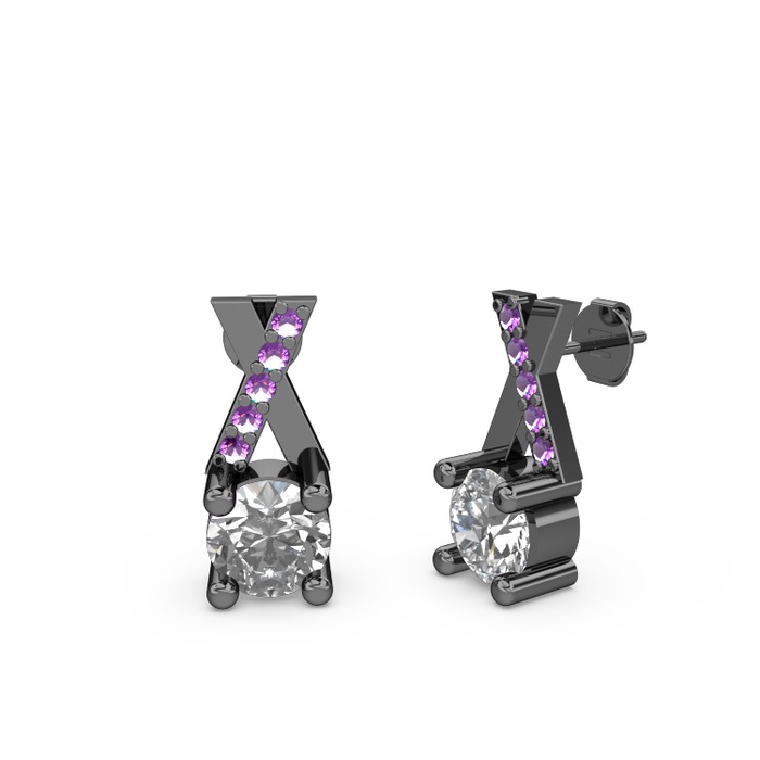 Pırlanta ve ametist 925 ayar siyah rodyum kaplama gümüş küpe (0.48 karat)