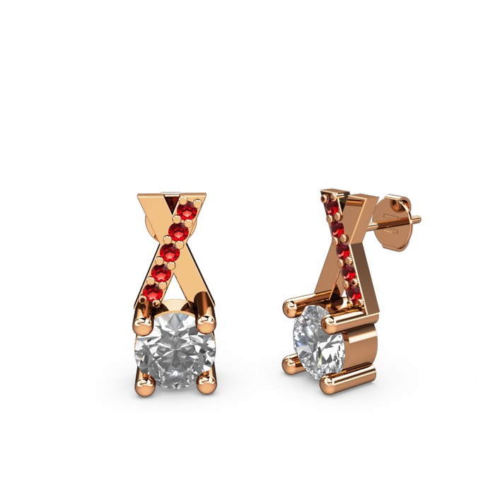 Pırlanta ve garnet 925 ayar rose altın kaplama gümüş küpe (0.48 karat)