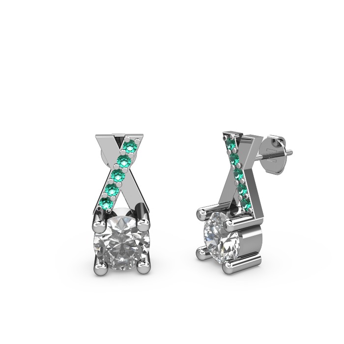 Pırlanta ve yeşil kuvars 8 ayar beyaz altın küpe (0.48 karat)
