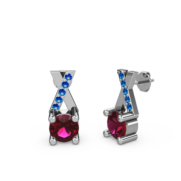 Rodolit garnet ve lab safir 925 ayar gümüş küpe