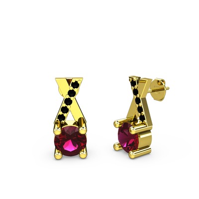 Rodolit garnet ve siyah zirkon 925 ayar altın kaplama gümüş küpe