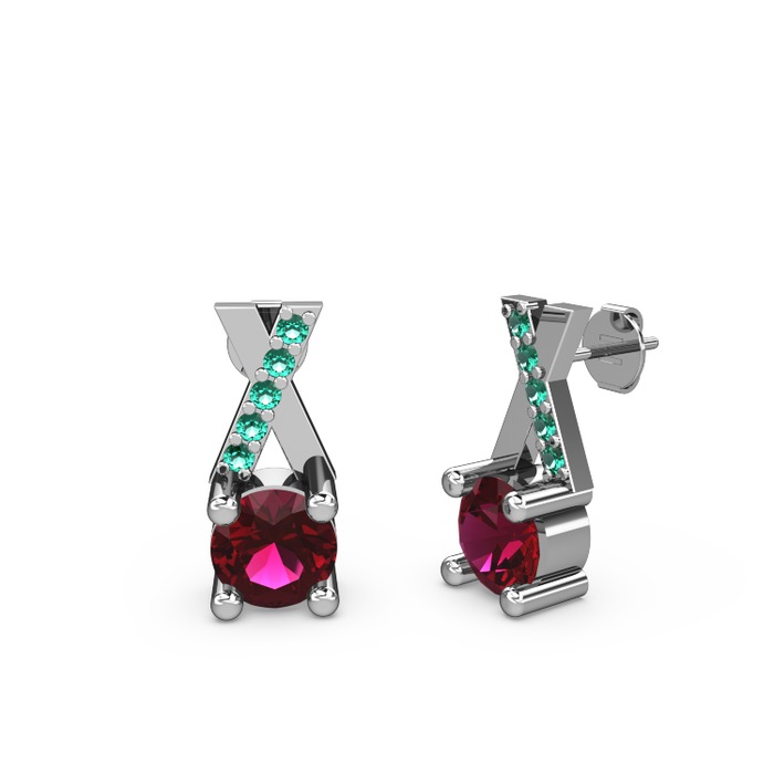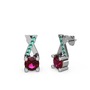 Rodolit garnet ve yeşil kuvars 14 ayar beyaz altın küpe