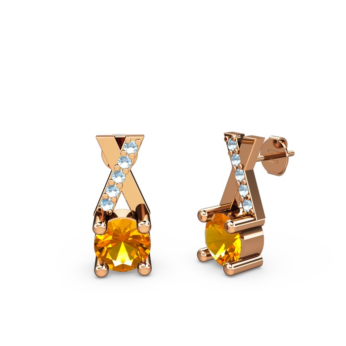 Sitrin ve akuamarin 18 ayar rose altın küpe