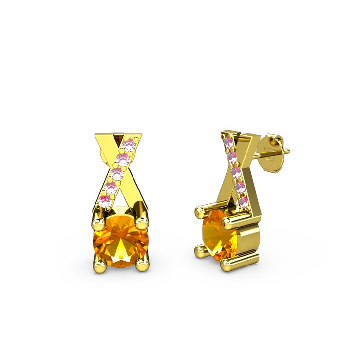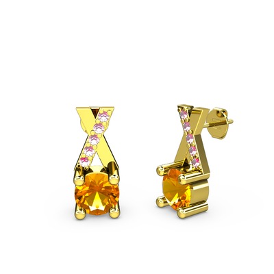 Sitrin ve pembe kuvars 18 ayar altın küpe