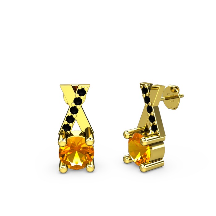 Sitrin ve siyah zirkon 925 ayar altın kaplama gümüş küpe
