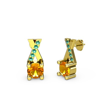 Sitrin ve yeşil kuvars 8 ayar altın küpe