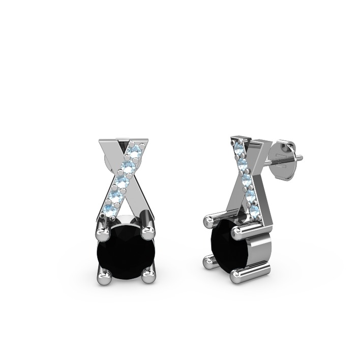 Siyah zirkon ve akuamarin 925 ayar gümüş küpe