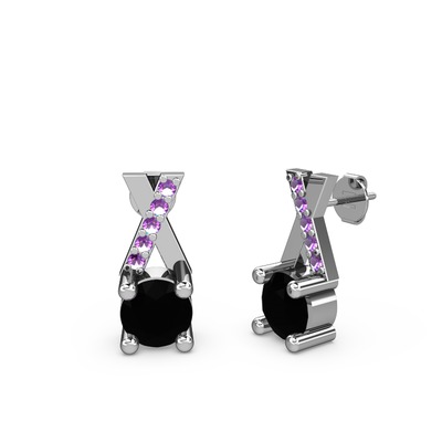 Siyah zirkon ve ametist 925 ayar gümüş küpe