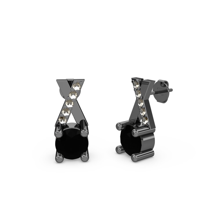 Siyah zirkon ve dumanlı kuvars 925 ayar siyah rodyum kaplama gümüş küpe