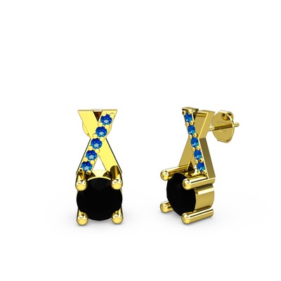 Siyah zirkon ve lab safir 8 ayar altın küpe