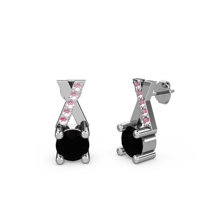 Siyah zirkon ve pembe kuvars 925 ayar gümüş küpe