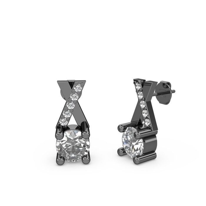 Swarovski ve pırlanta 925 ayar siyah rodyum kaplama gümüş küpe (0.088 karat)