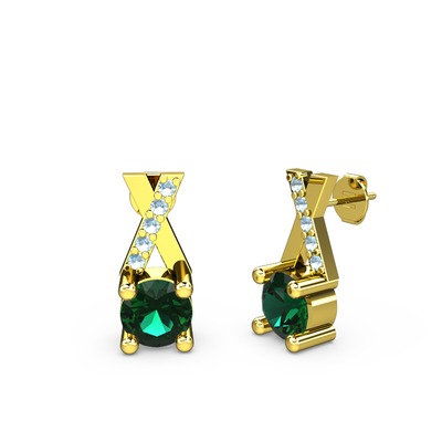 Yeşil kuvars ve akuamarin 14 ayar altın küpe