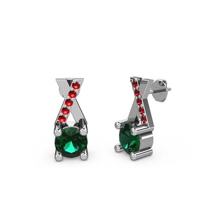 Yeşil kuvars ve garnet 14 ayar beyaz altın küpe