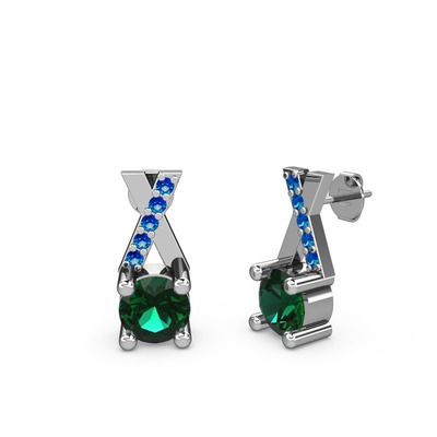 Yeşil kuvars ve lab safir 18 ayar beyaz altın küpe