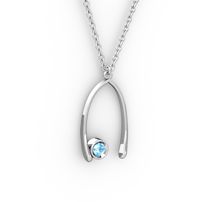 Akuamarin 18 ayar beyaz altın kolye (40 cm beyaz altın rolo zincir)