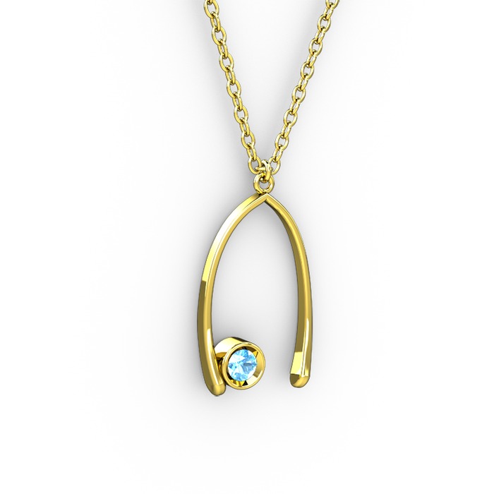 Akuamarin 925 ayar altın kaplama gümüş kolye (40 cm altın rolo zincir)