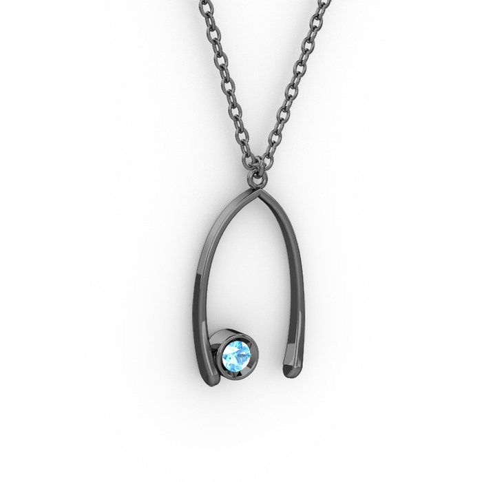 Akuamarin 925 ayar siyah rodyum kaplama gümüş kolye (40 cm gümüş rolo zincir)