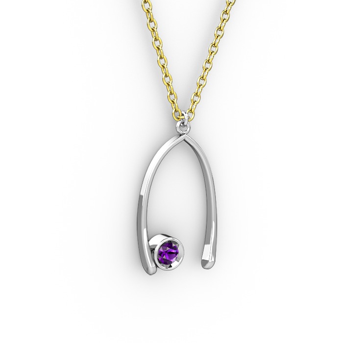 Ametist 14 ayar beyaz altın kolye (40 cm altın rolo zincir)