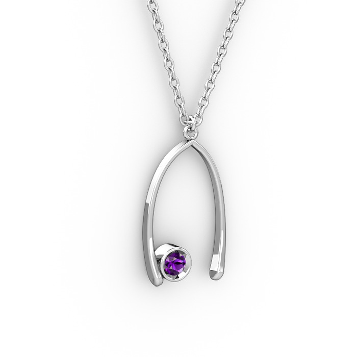 Ametist 18 ayar beyaz altın kolye (40 cm beyaz altın rolo zincir)