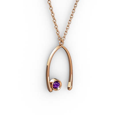 Ametist 8 ayar rose altın kolye (40 cm rose altın rolo zincir)