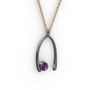 Ametist 925 ayar siyah rodyum kaplama gümüş kolye (40 cm rose altın rolo zincir)