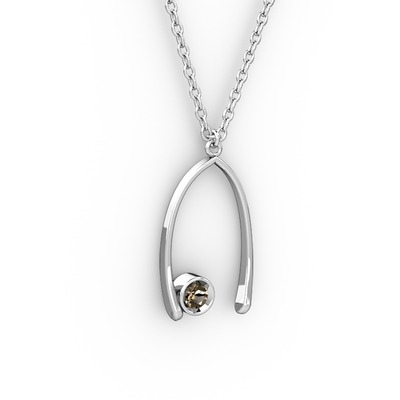 Dumanlı kuvars 14 ayar beyaz altın kolye (40 cm beyaz altın rolo zincir)