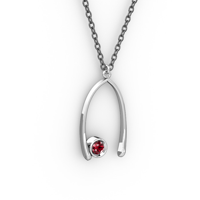 Garnet 14 ayar beyaz altın kolye (40 cm gümüş rolo zincir)