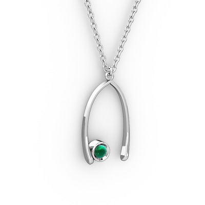Kök zümrüt 18 ayar beyaz altın kolye (40 cm beyaz altın rolo zincir)