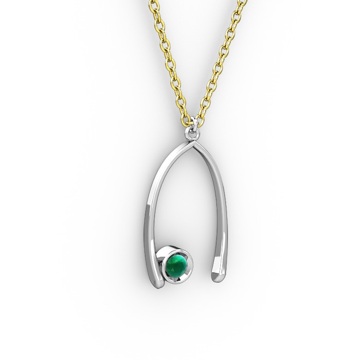 Kök zümrüt 8 ayar beyaz altın kolye (40 cm altın rolo zincir)