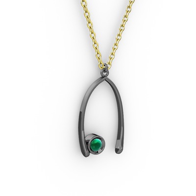 Kök zümrüt 925 ayar siyah rodyum kaplama gümüş kolye (40 cm altın rolo zincir)