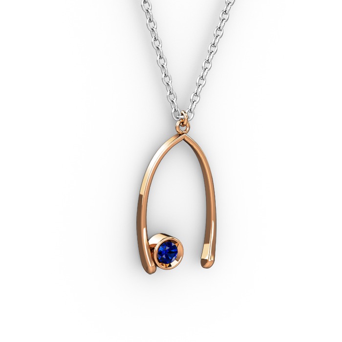 Lab safir 18 ayar rose altın kolye (40 cm gümüş rolo zincir)