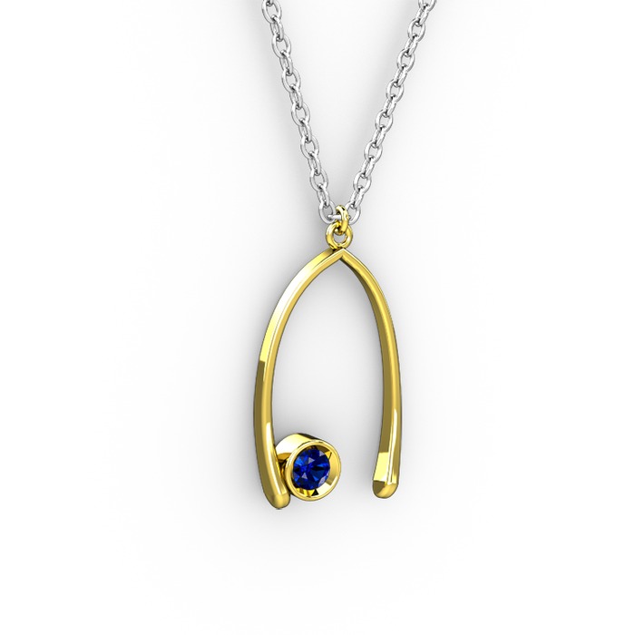 Lab safir 8 ayar altın kolye (40 cm beyaz altın rolo zincir)