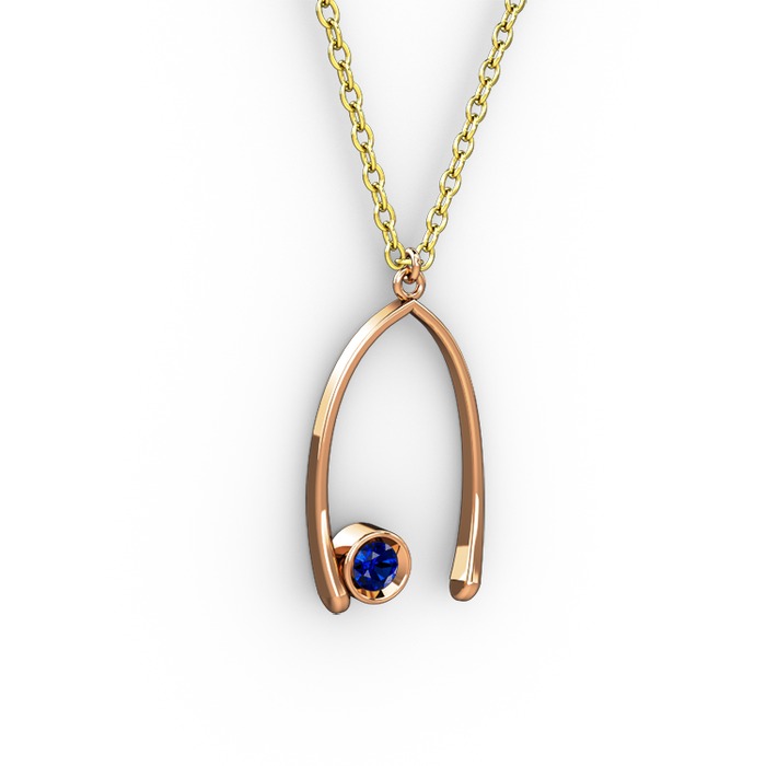 Lab safir 925 ayar rose altın kaplama gümüş kolye (40 cm altın rolo zincir)