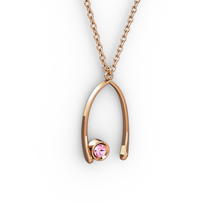 Pembe kuvars 14 ayar rose altın kolye (40 cm rose altın rolo zincir)